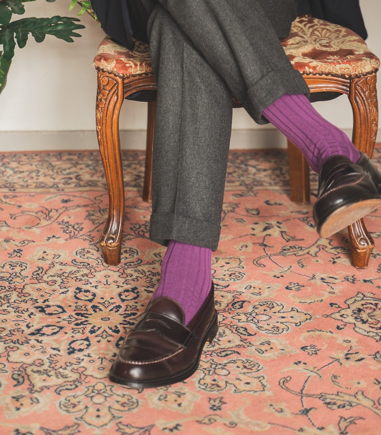国内でも稀少な本当のリブを編めるパイル機を使用して作られており、独特のフィット感を保ちつつスタイリッシュに合わせられるリブパイルソックス。