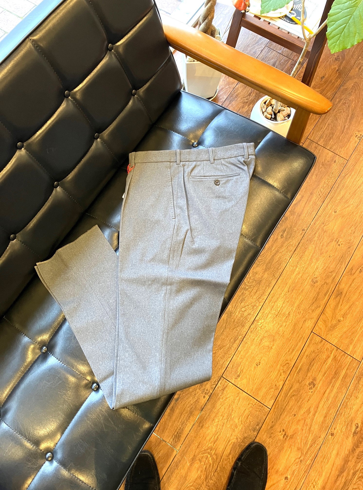 さて、今日はオンでもオフでも活躍するストレッチドレスパンツのご紹介です。ジャケパンにもプライベートでも使えます。