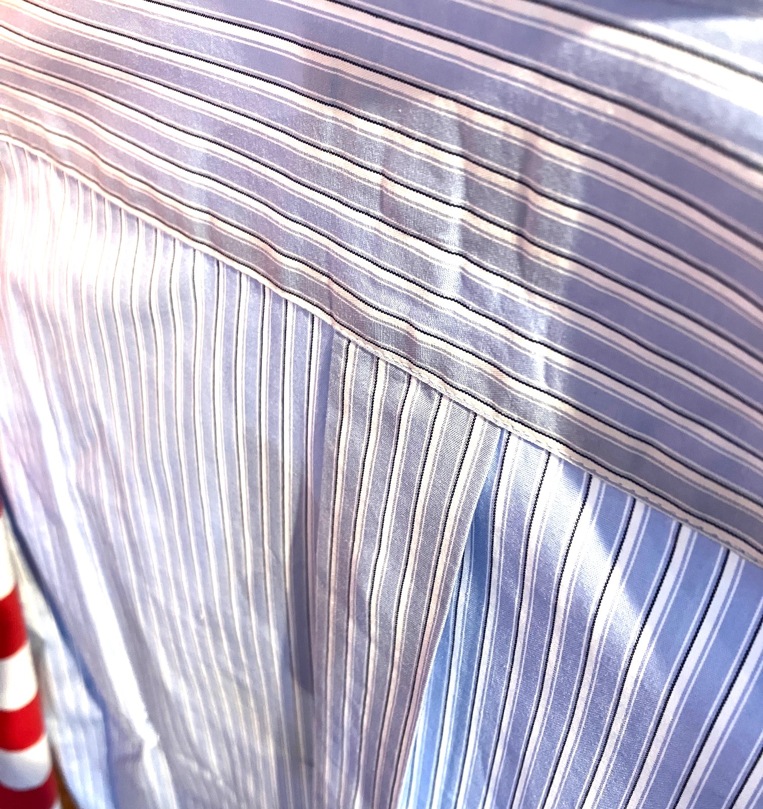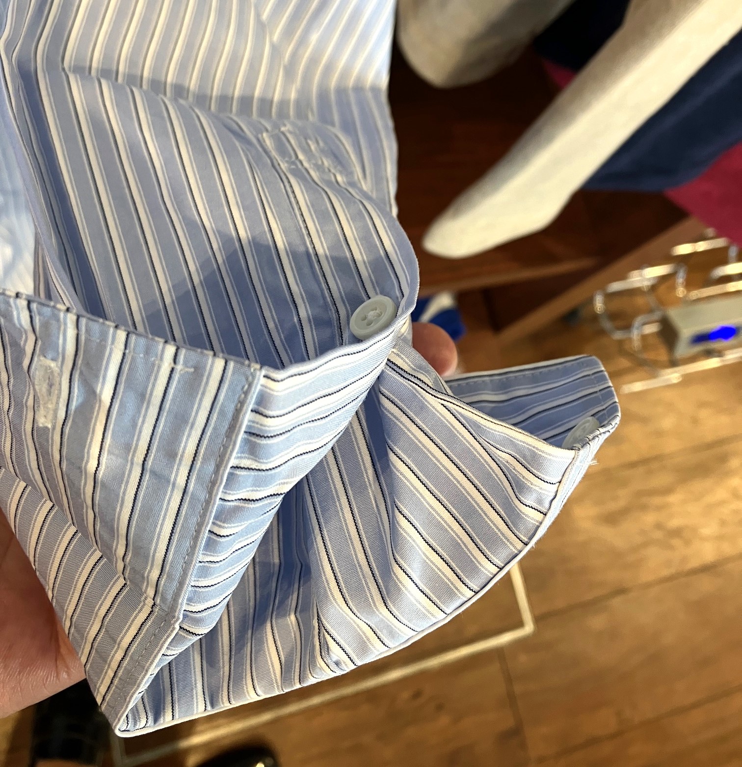 さて、色のキレイなロンドンストライプのシャツが届きました。丁寧なつくりと各所にお洒落ポイントのある良いシャツ。