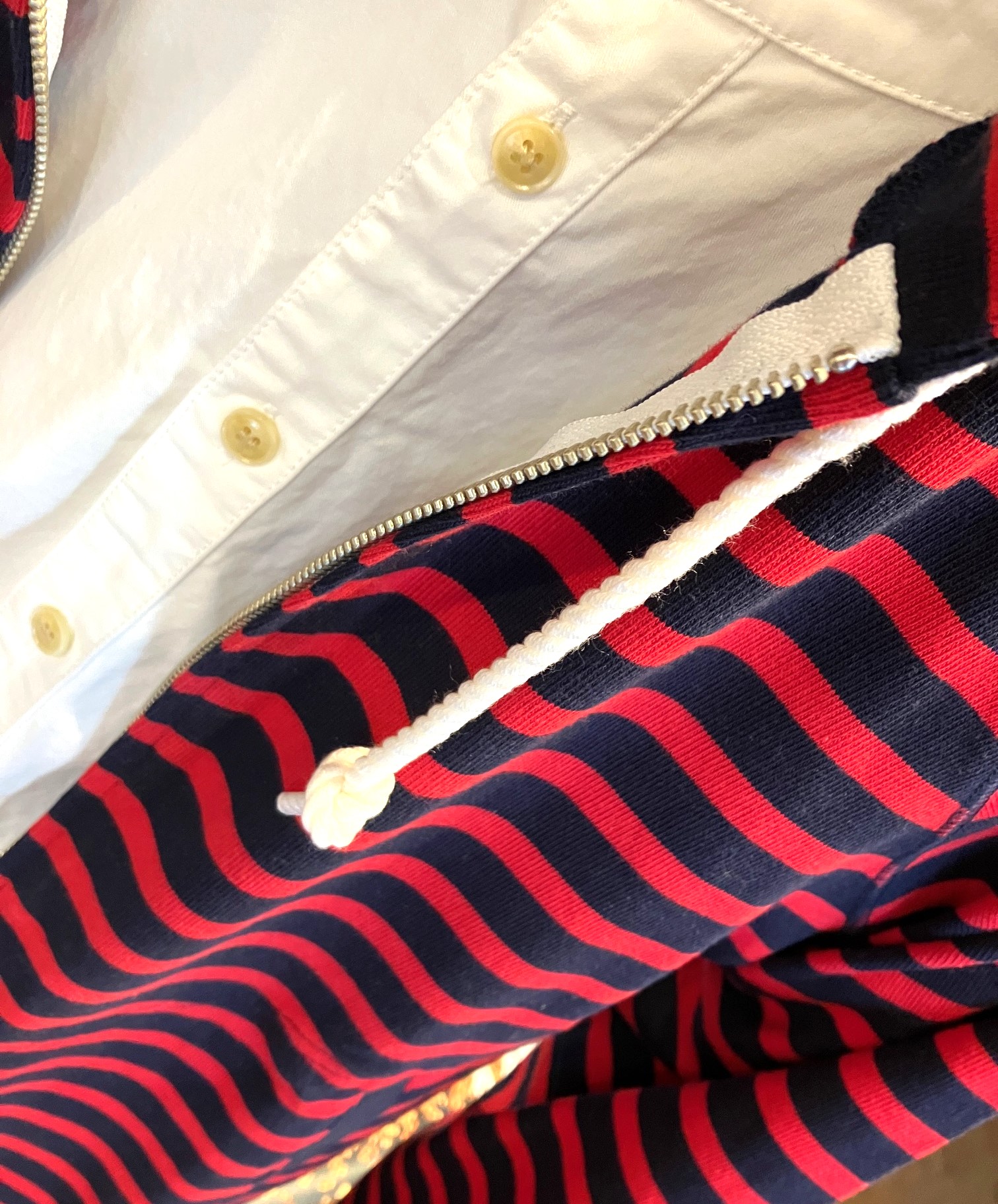 さて、最近徐々に涼しくなってきましたので今日はサッと羽織れて洒落たこちらの国産ボーダージップパーカーのご紹介です。