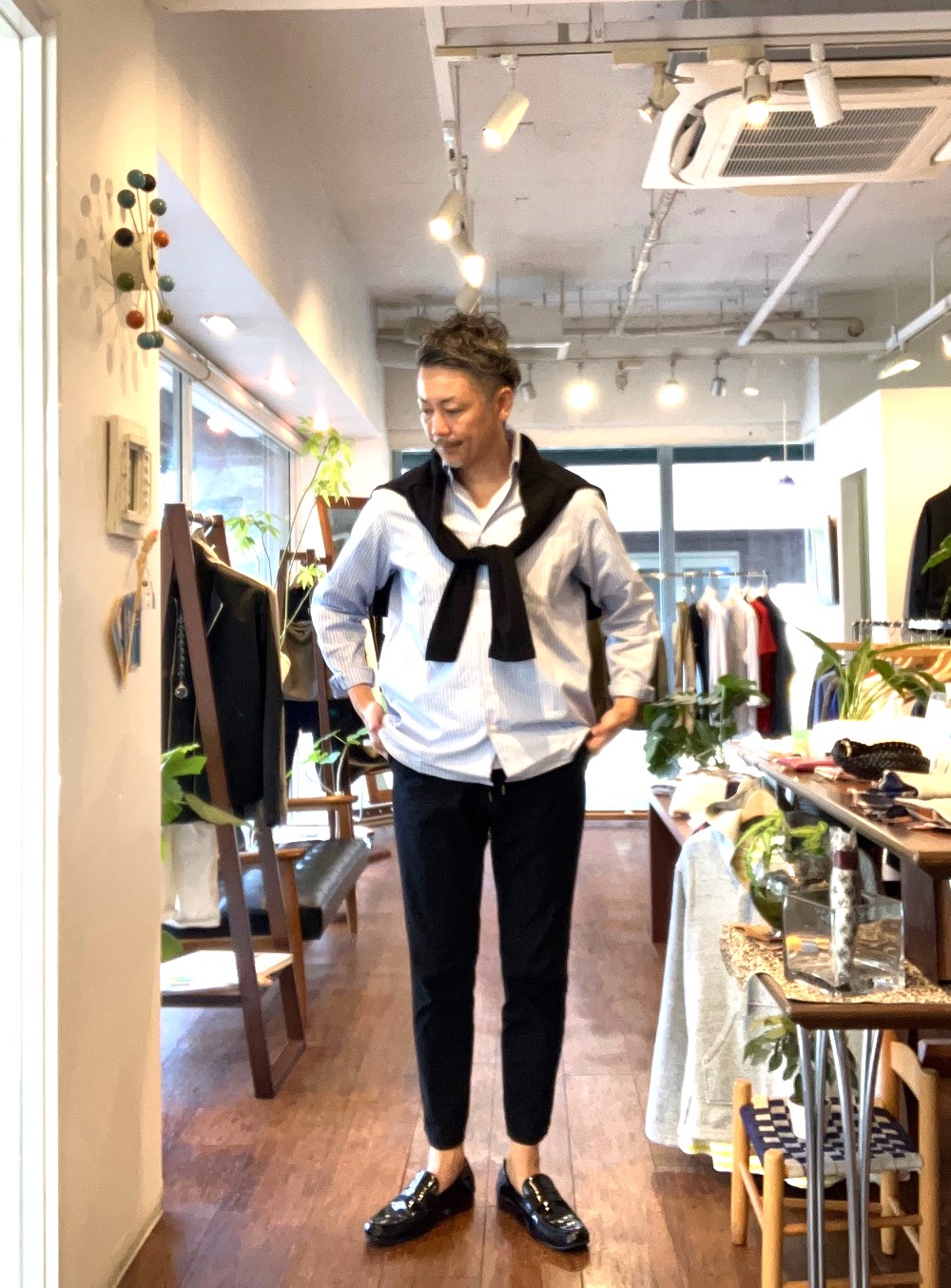 感心するほど暑い日が続きますねえ。 そんな中当店は秋物が続々入荷中で、品出しをしながら「お?これ良いねえ!」と新作を見ながら独り言をつぶやいてます! そしてふと外を見ると、暑そう。 この時期特有のジレンマといいますか、外は暑いのに秋物をご紹介するという…。でも結局は新作はやっぱりどれも自信のセレクトで、実際に着る時期の秋本番(冬本番)になるともう完売してしまってたり。 とりあえず大人の楽しみ方としては、秋物をゲットしたら部屋に掛けてそれを眺めてお酒でも飲みながら「これ着てどこへ出かけよう?」なんて考えて過ごすのがオツで、大人の楽しみ方のような気がします! そんなこんなで暑い日は続きますが、やがて来る秋を楽しみにしていきましょう! 秋はすぐそこに!オータム玉田です!