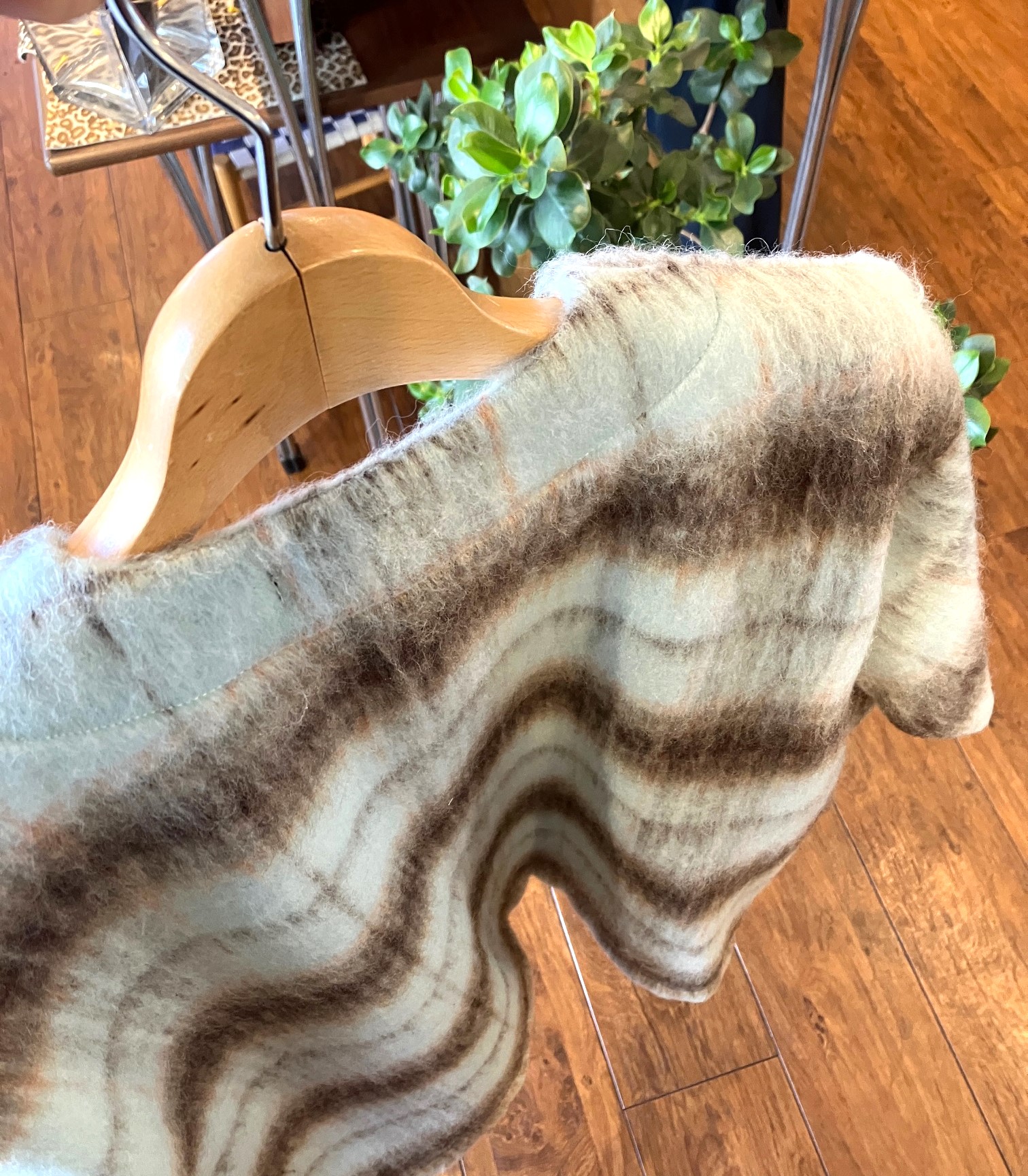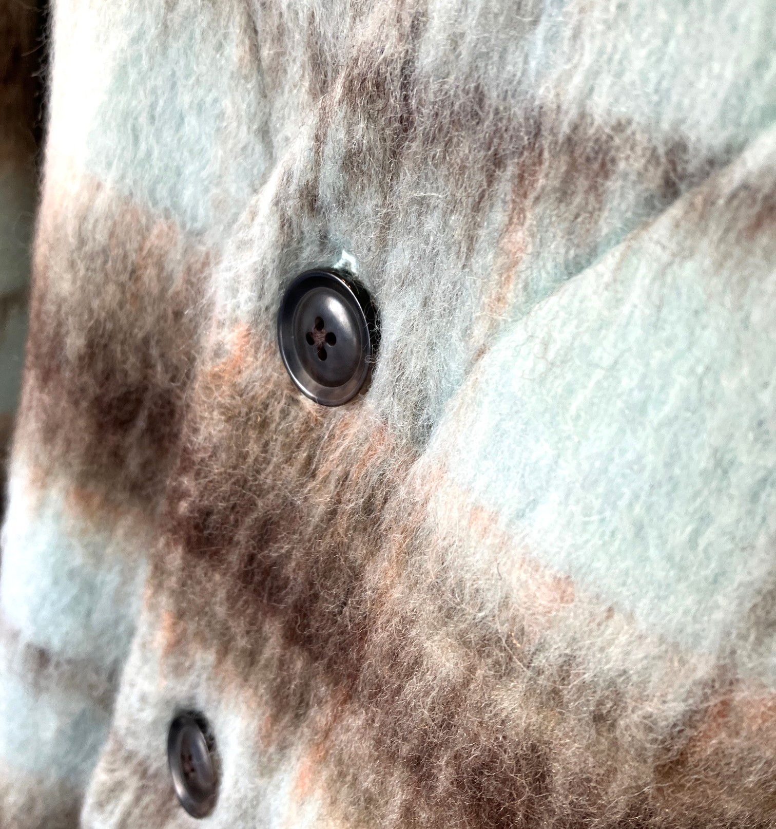 環境に配慮した素材でありながらファッション性もあり、ふわふわの着心地感と遊び心のあるシャギーチェック。軽くて温かく肌寒いときにサッと羽織れる1着です。