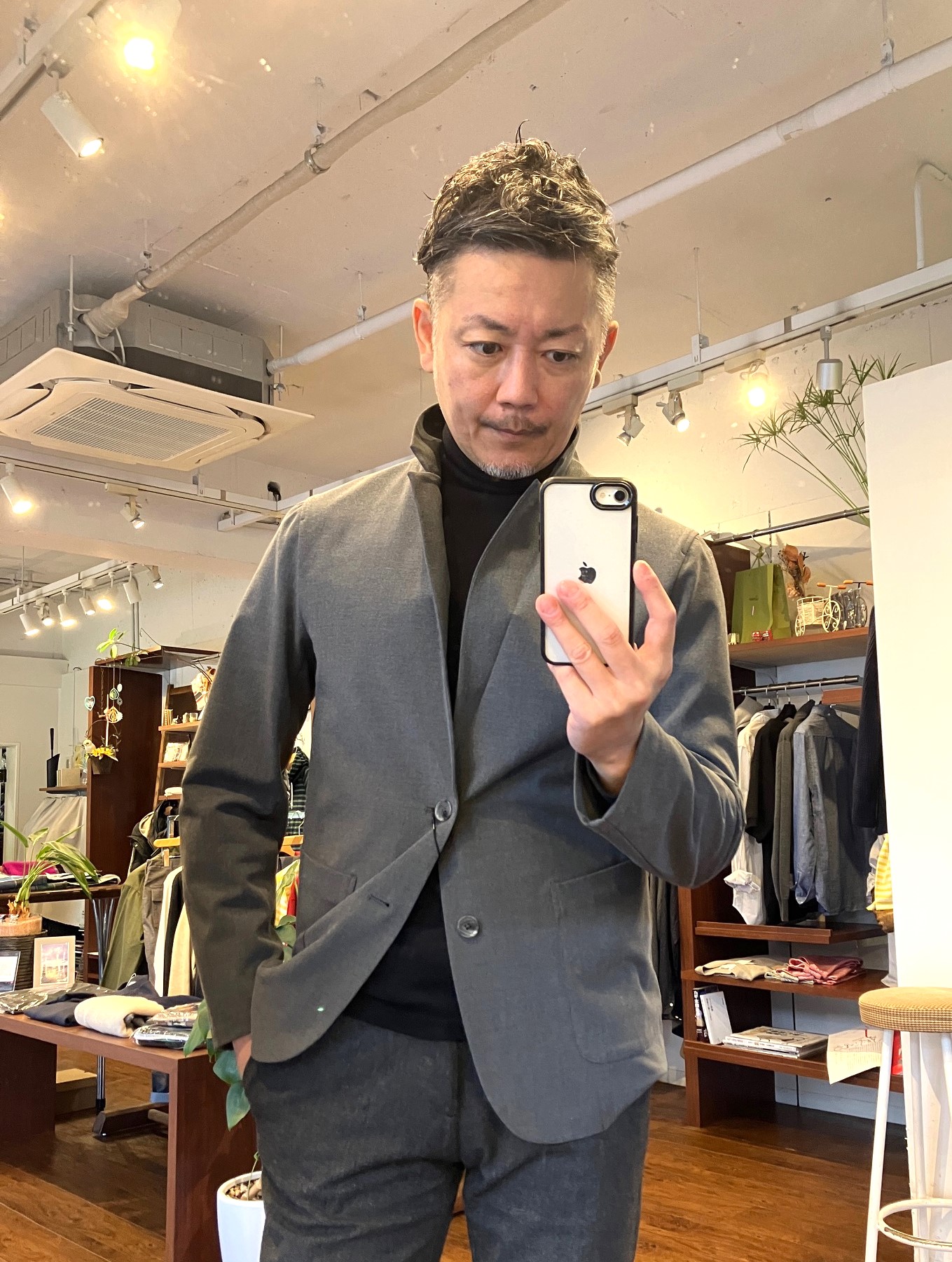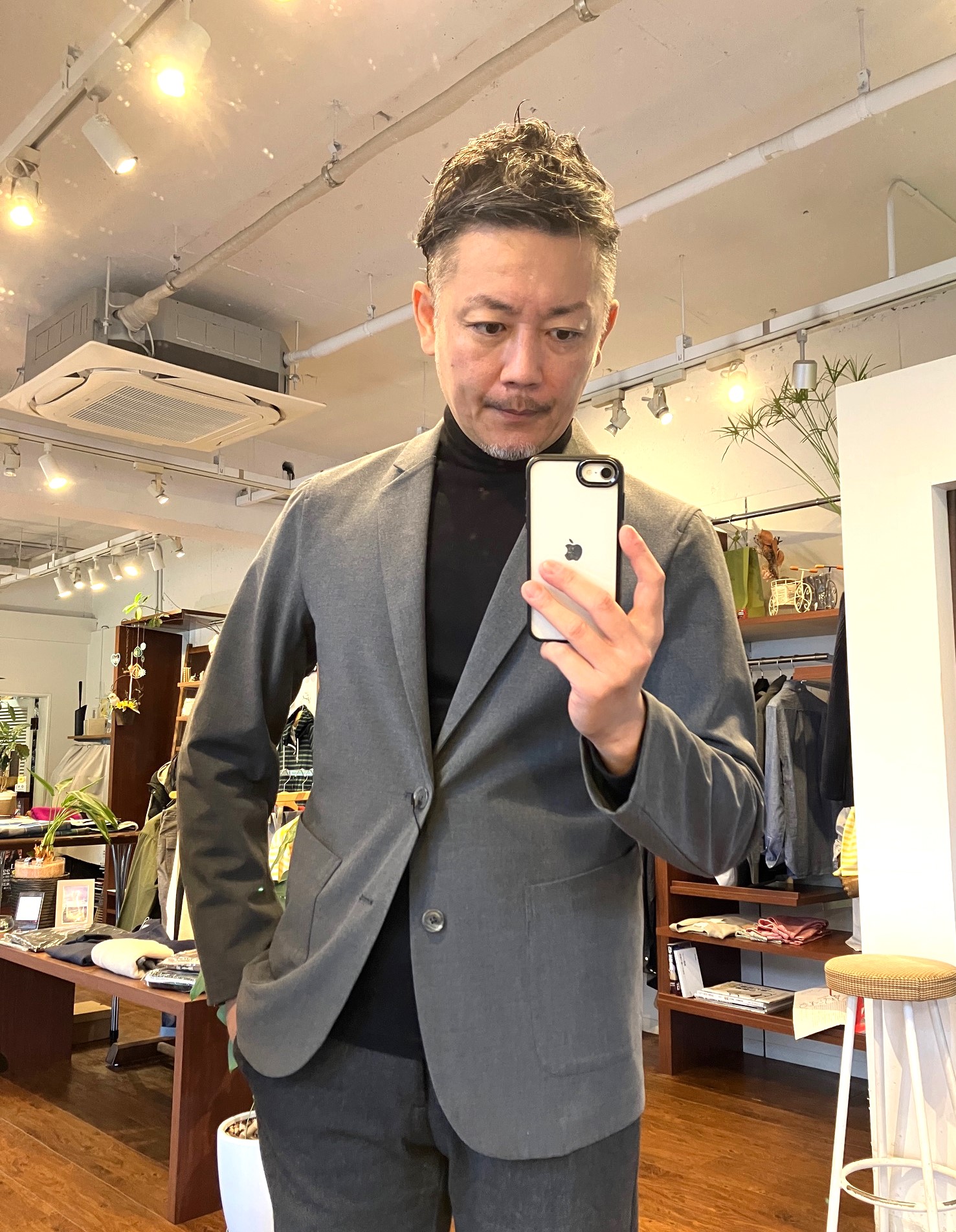 さて、今日は大人なら何着も持っておくべきのテーラードのご紹介。程よいストレッチ感のあるイージーテーラードです。