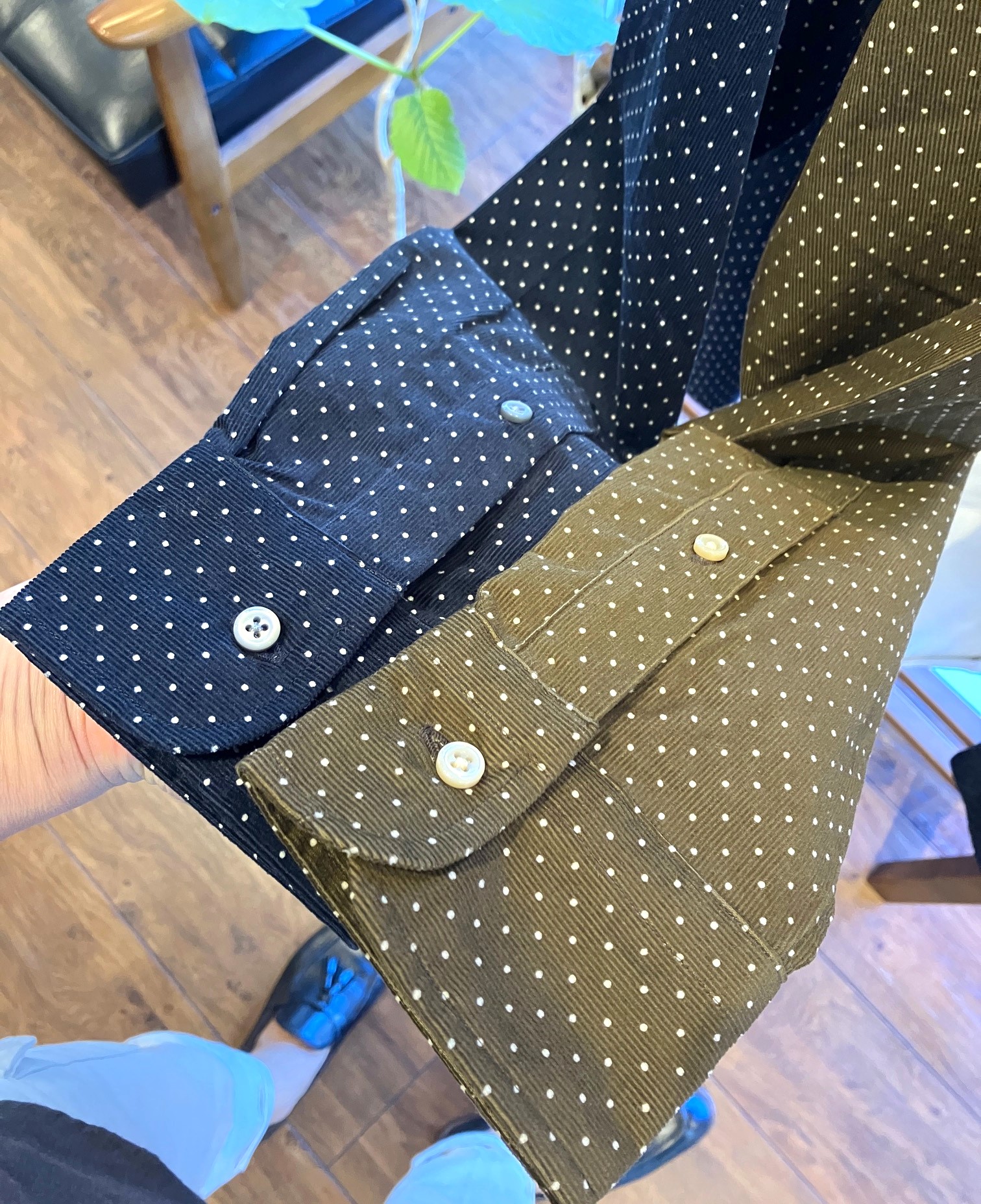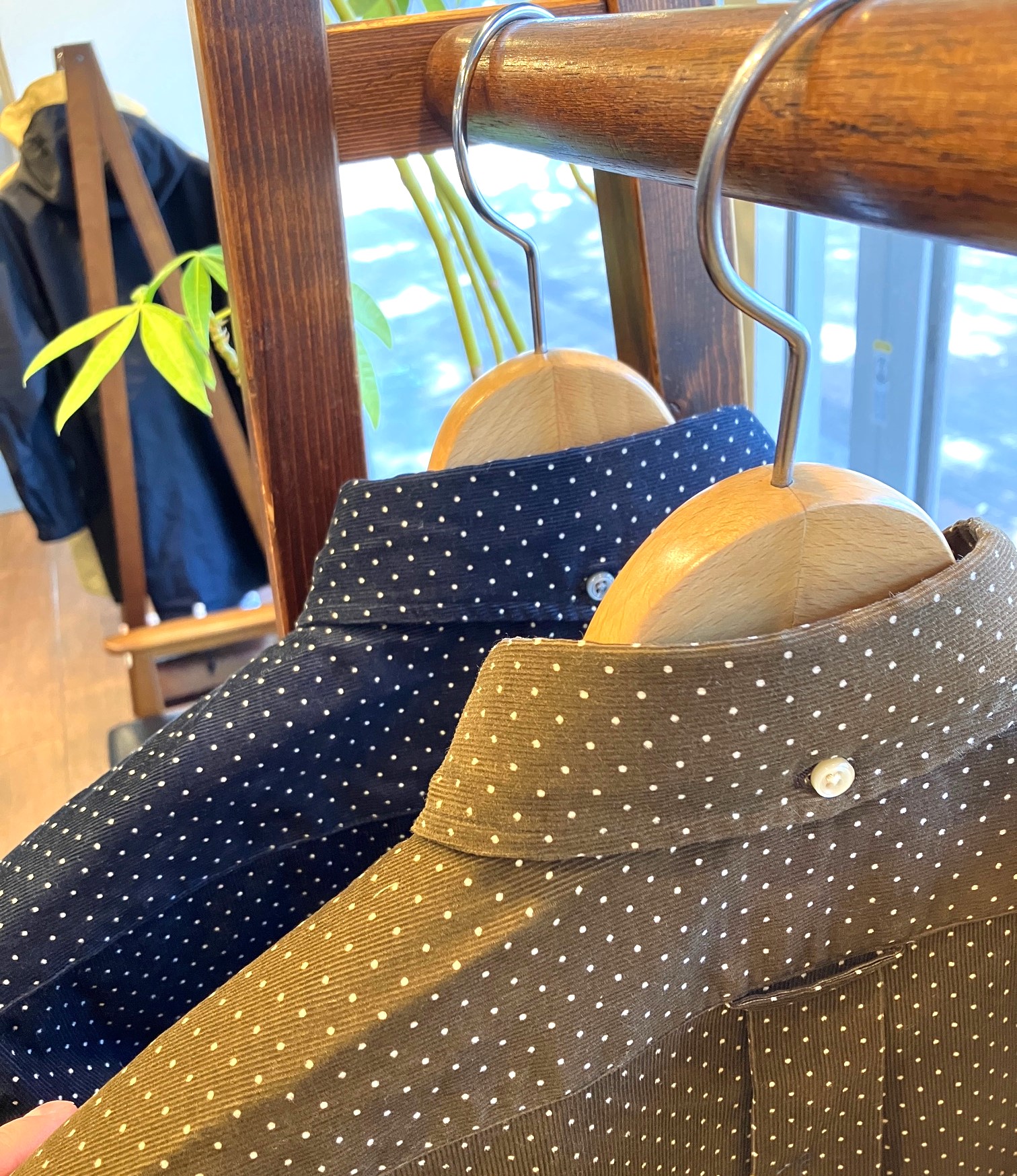 さて、今日は隔年で取り扱ってきたコーデュロイのドットシャツのご紹介。丈夫で使いやすく、品も良い洒落た大人のシャツ。