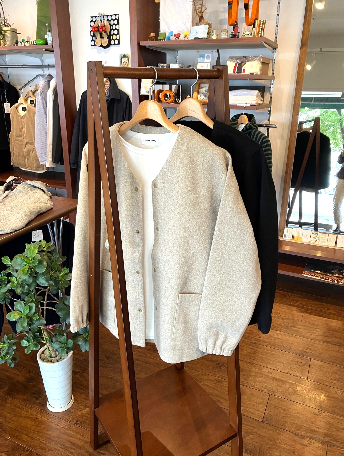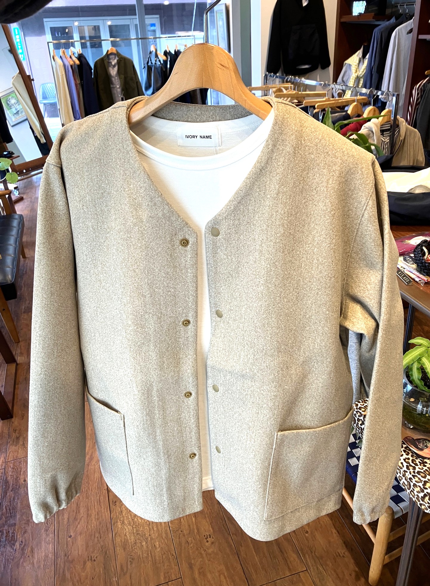 コートにも使われそうなポリメルトンで、肉厚なこちらのVネックカーディガン。 ゆったりとしたサイズ感で中にもしっかり着込めるので、今からの時期には軽めのアウターとしても使えるのが嬉しい。 もちろん重衣料のインナーとしても使えるので着こなしの幅が広がりそうです。