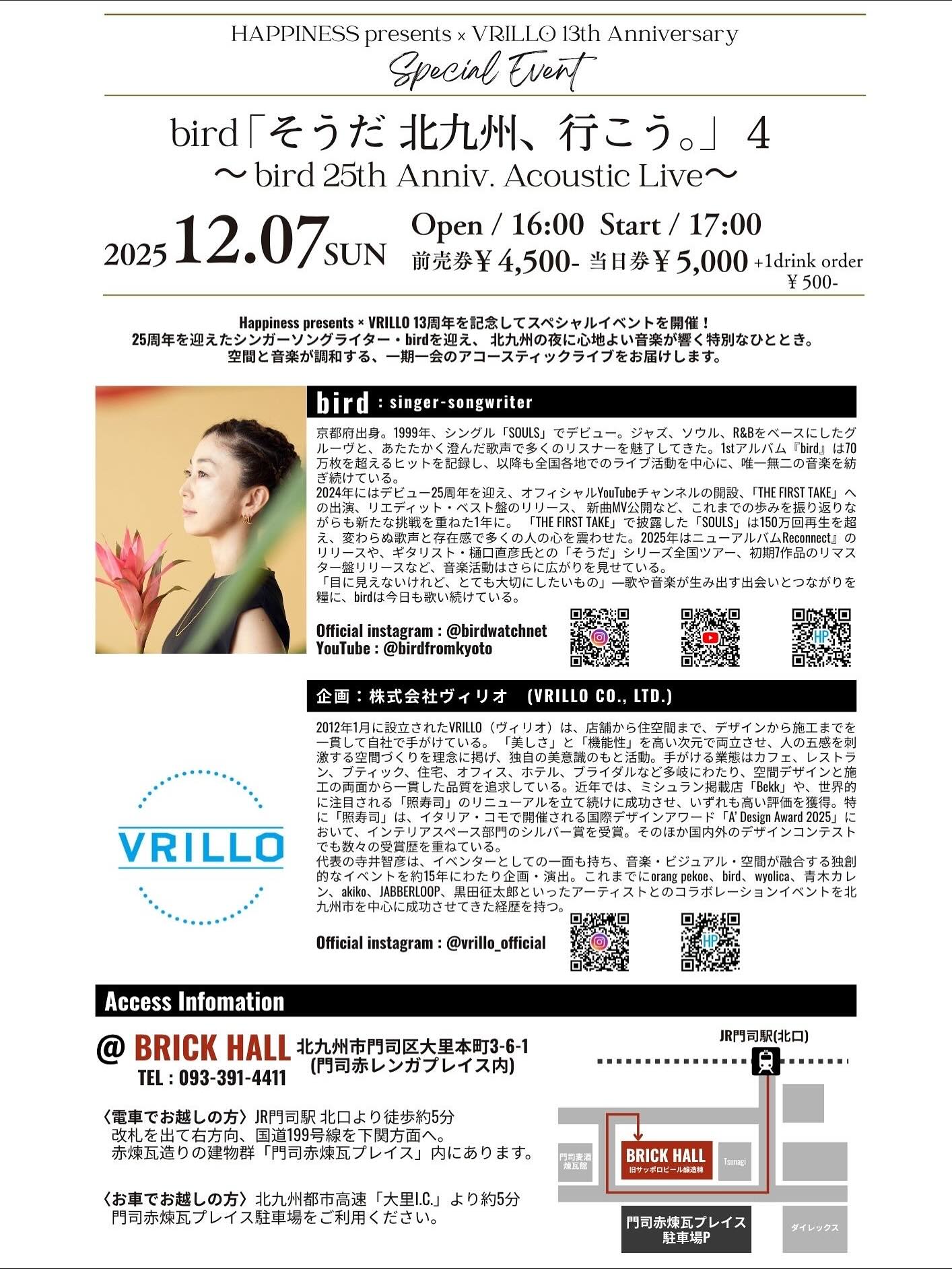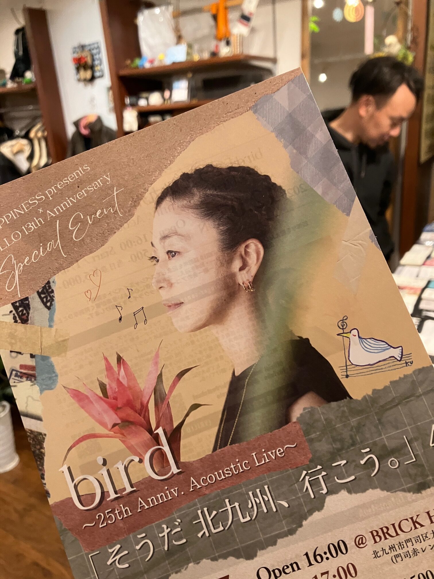 さて、年下の友人でもあるTくんが、門司にあのBIRDさんを呼んでアコースティックライブを行うそうです。BIRDさんは昔からの知人だそうで。本業も忙しそうなのにこのイベントでさらに多忙に…。 ミシュラン店の店舗デザインしたり、あの有名店のデザインしたり、海外で賞もらったり、忙しそうすぎて倒れそうな彼。
