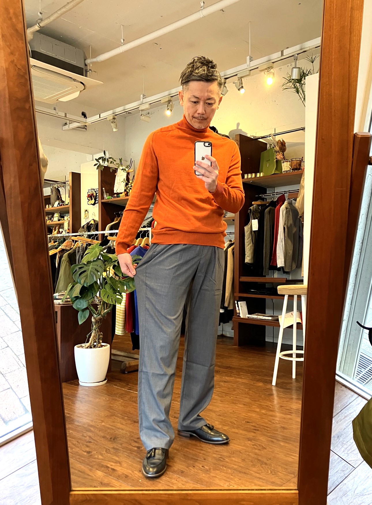 先日、お客様が「最近気分が優れないから明るい色の服を買いにきた」と言われて、そんなファッションの楽しみ方も良いなあとあらためて思った今日この頃です! たしかに寒い時期は着こなしも暗くなりがちになるので、僕も見習って明るい色を着るようにしたいと思いました! でも着るもので気分が上がったりするって確かにありますよね!それに服を買うとどこかに出かけたくなる→出かけると気分も上がるという流れもファッションの役割だったりします。最近テンション上がらない方は是非ご来店お待ちしております♪ ハッとしてグッド!玉田です!