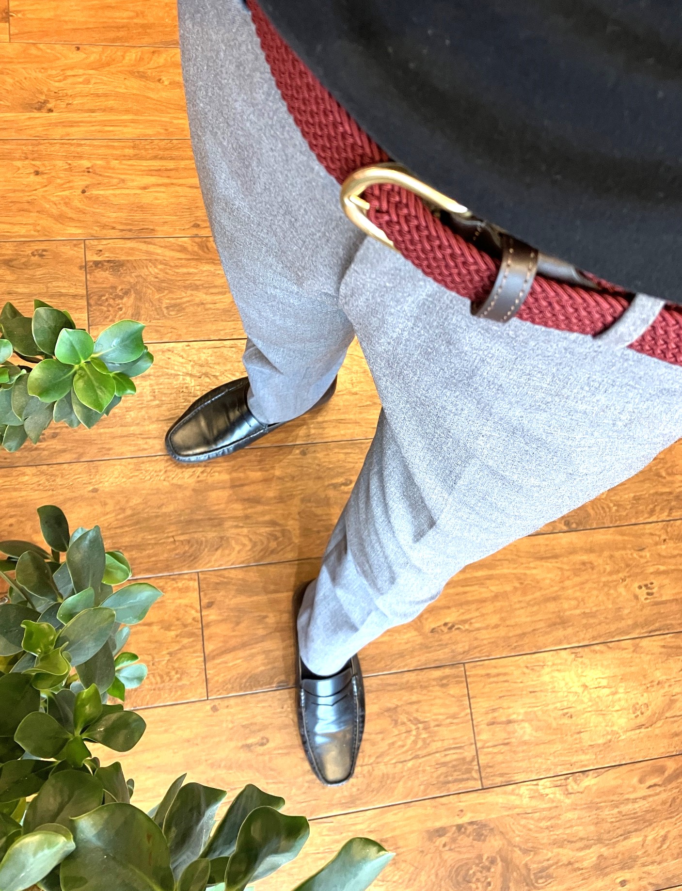 使いやすさは言わずもがな、ゴムでできている編みのどこにフックを指しても大丈夫なこちら。便利なうえにイタリアらしく色がキレイに仕上がっております。 また革使いも素晴らしいのも特徴です。 画像のようにスラックスとも相性が良く、カジュアルにもキレイめにも使いやすいので色んな色を持っておくと本当に便利。