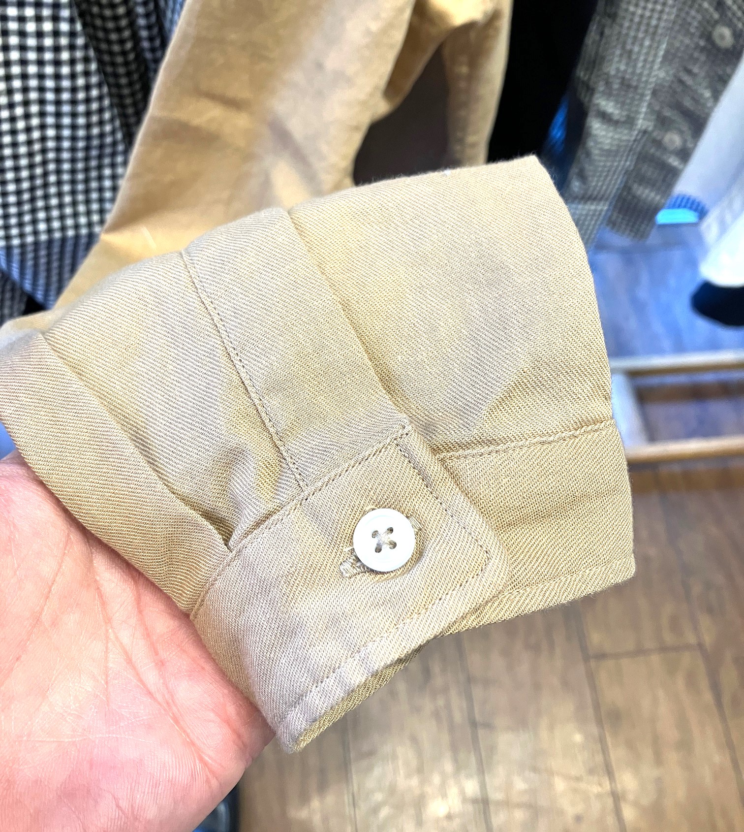 Tシャツの上からでもシャツの上からでもカーディガンのようにサラリと羽織れてサマになるのが特徴です。ジャケットのような雰囲気ながら、袖口などのシャツ仕様のおかげで固くなりすぎないのも嬉しい。 また、洗いこむごとに独特の高級感が出てきそうな予感もオススメのポイント。 写真が下手なので上手く伝わりませんが、実物は非常によくできた洒落た1着です。
