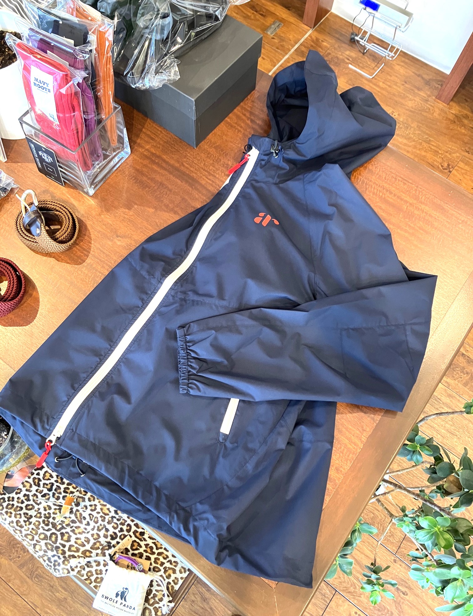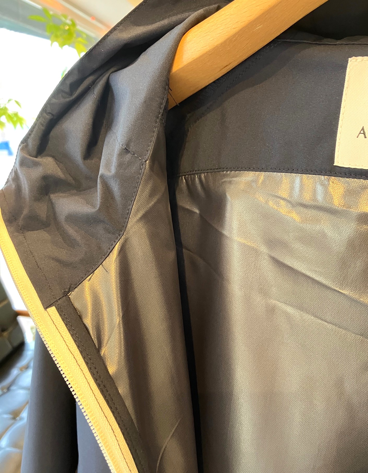 さて、今日はウィンドブレーカーのような新素材のフード付きフルジップブルゾンのご紹介。今の時期にピッタリの厚さ。