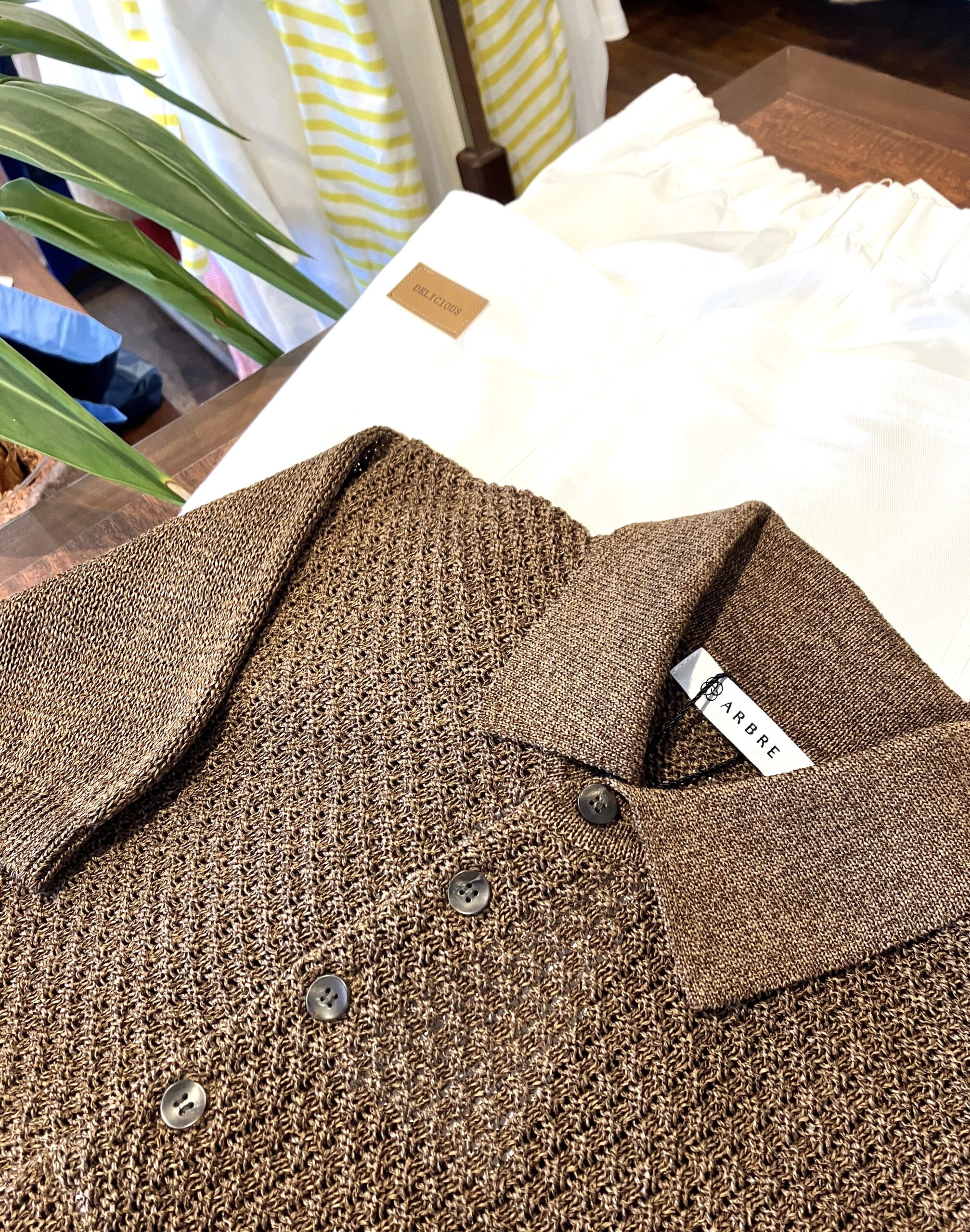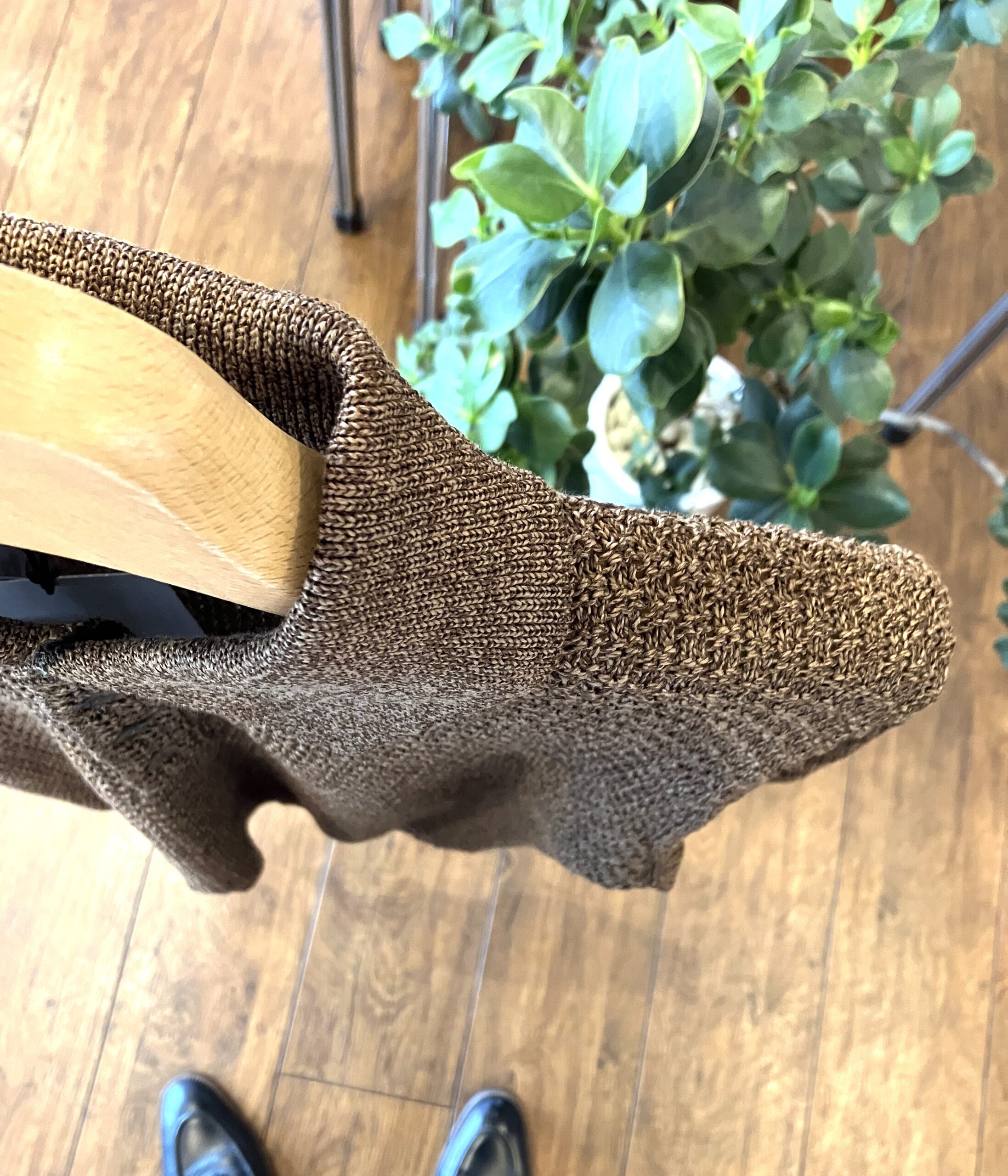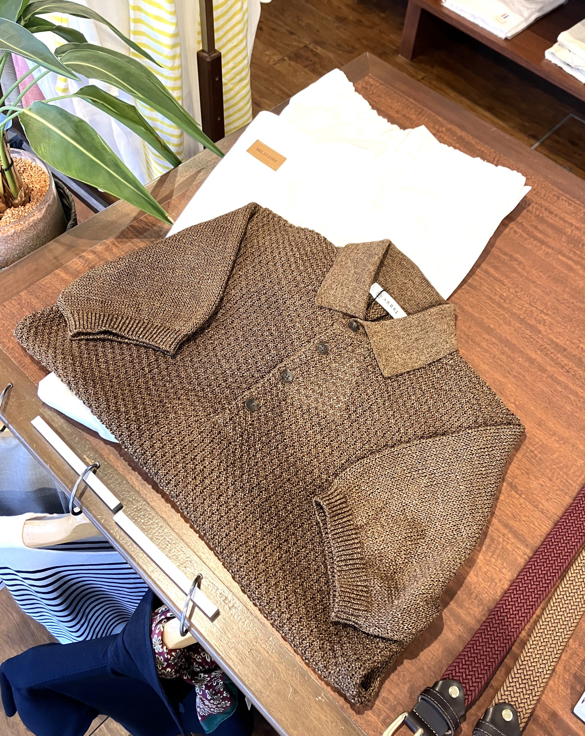 さて、今日は和紙混のニットポロシャツのご紹介です。独特の風合いと涼しい着心地が特徴の、上質な大人のための1着。